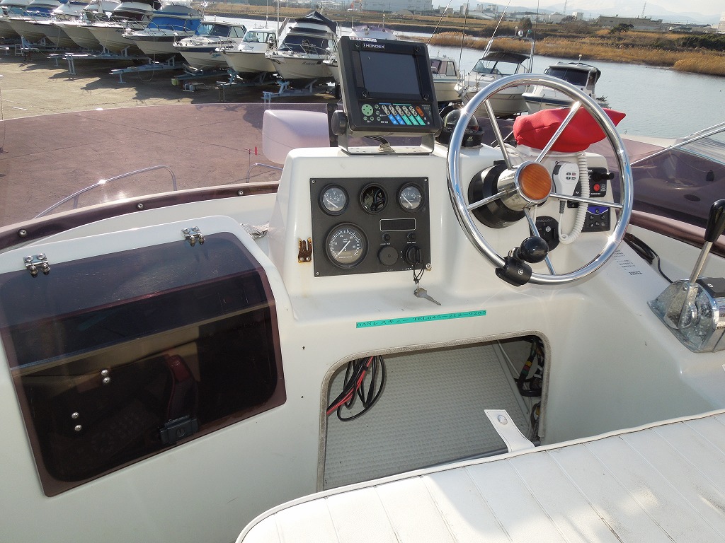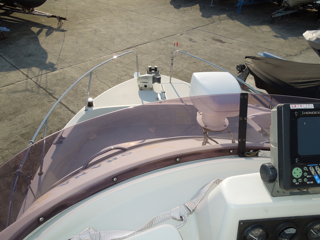 | 艤装品 | GPS・魚探 / GPS / 魚探 / マリントイレ / アウトリガー / FB / ウインドラス / アンカー / ダイネッティー / バッテリーチャージャー / マリンVHF / ロッドホルダー / スラスター / デッキウォッシュ / イケス / デッキライト |