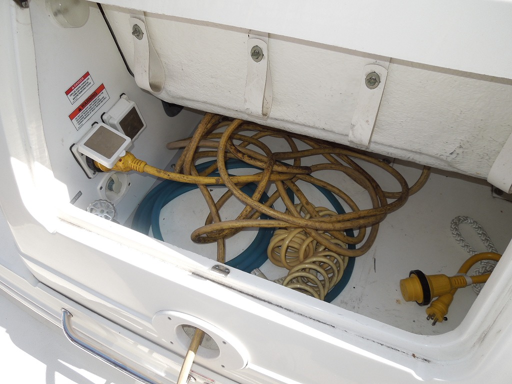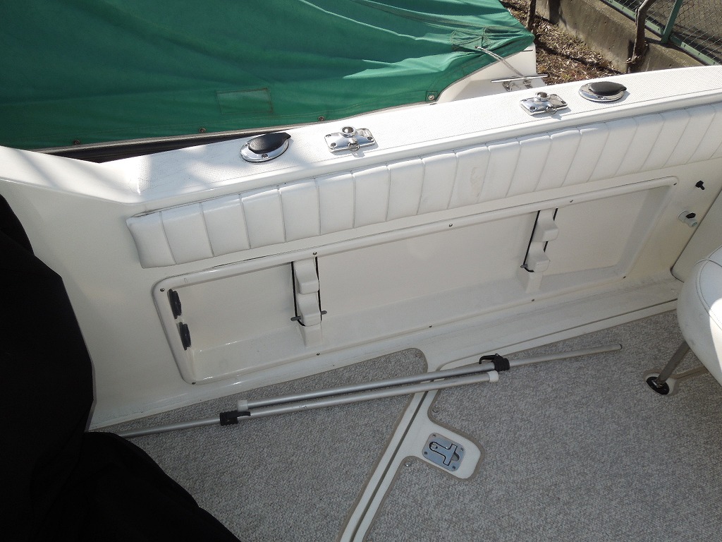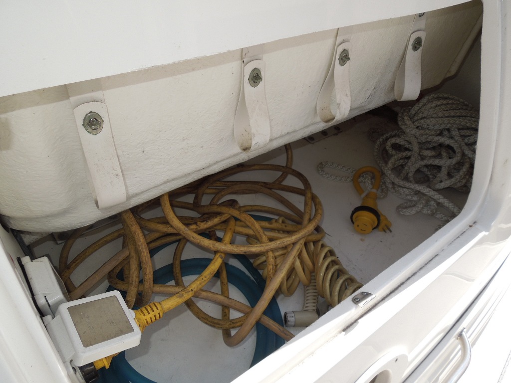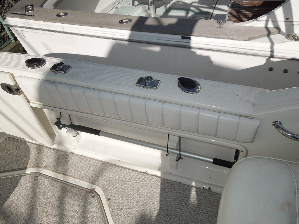 | 艤装品 | GPS・魚探 / マリントイレ / ウインドラス / アンカー / ギャレー / トイレ・シャワールーム / 陸電システム / エアコン / 電子レンジ / 冷蔵庫 / テレビ / ステレオ / トランサムステップ / スイミングラダー / デッキウォッシュ / イケス |