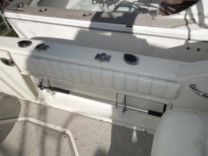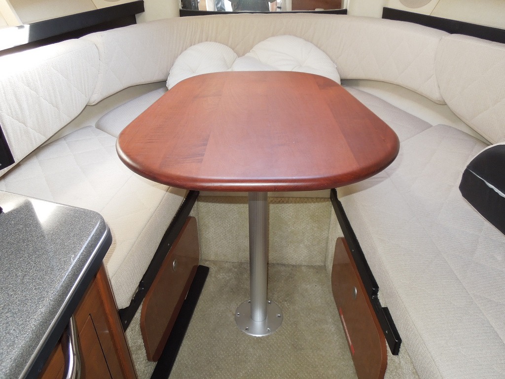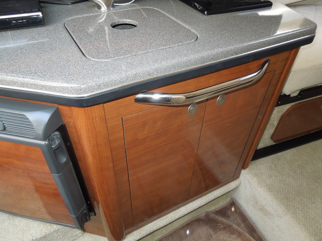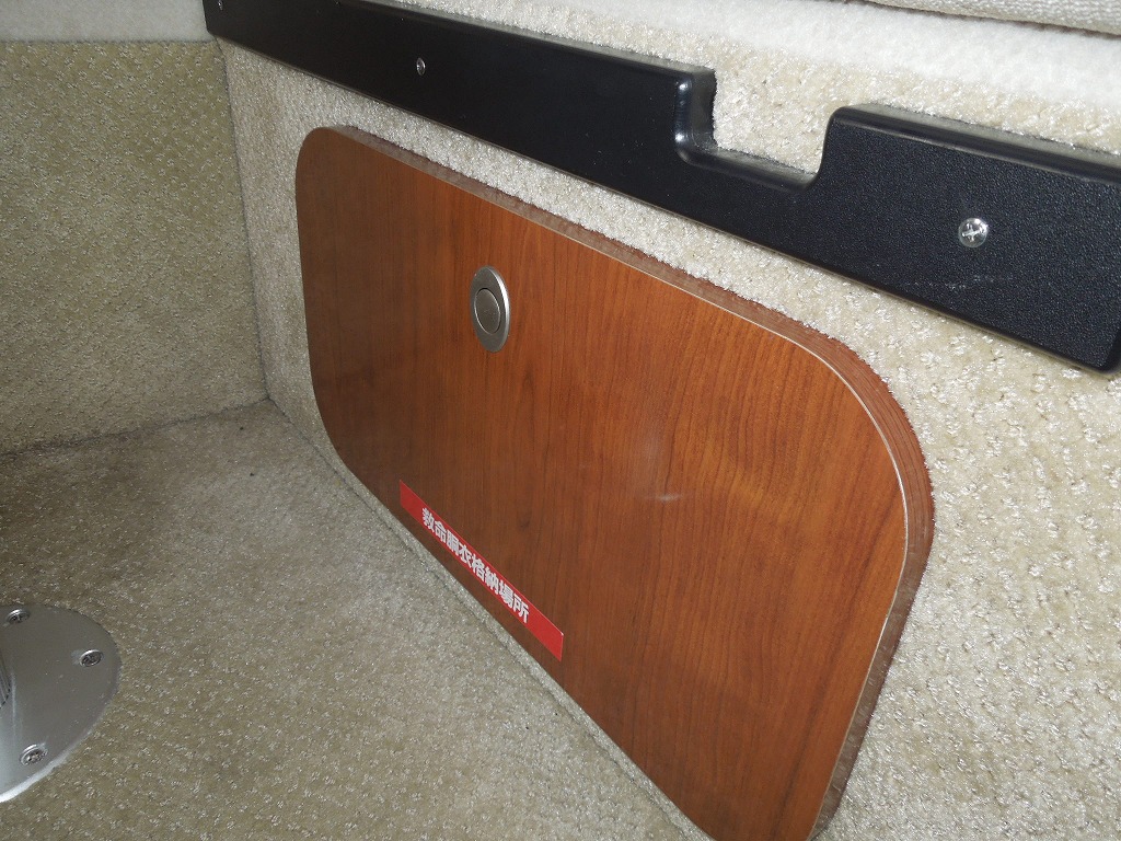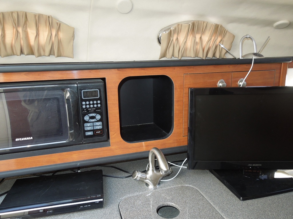 | 艤装品 | GPS・魚探 / マリントイレ / ウインドラス / アンカー / ギャレー / トイレ・シャワールーム / 陸電システム / エアコン / 電子レンジ / 冷蔵庫 / テレビ / ステレオ / トランサムステップ / スイミングラダー / デッキウォッシュ / イケス |