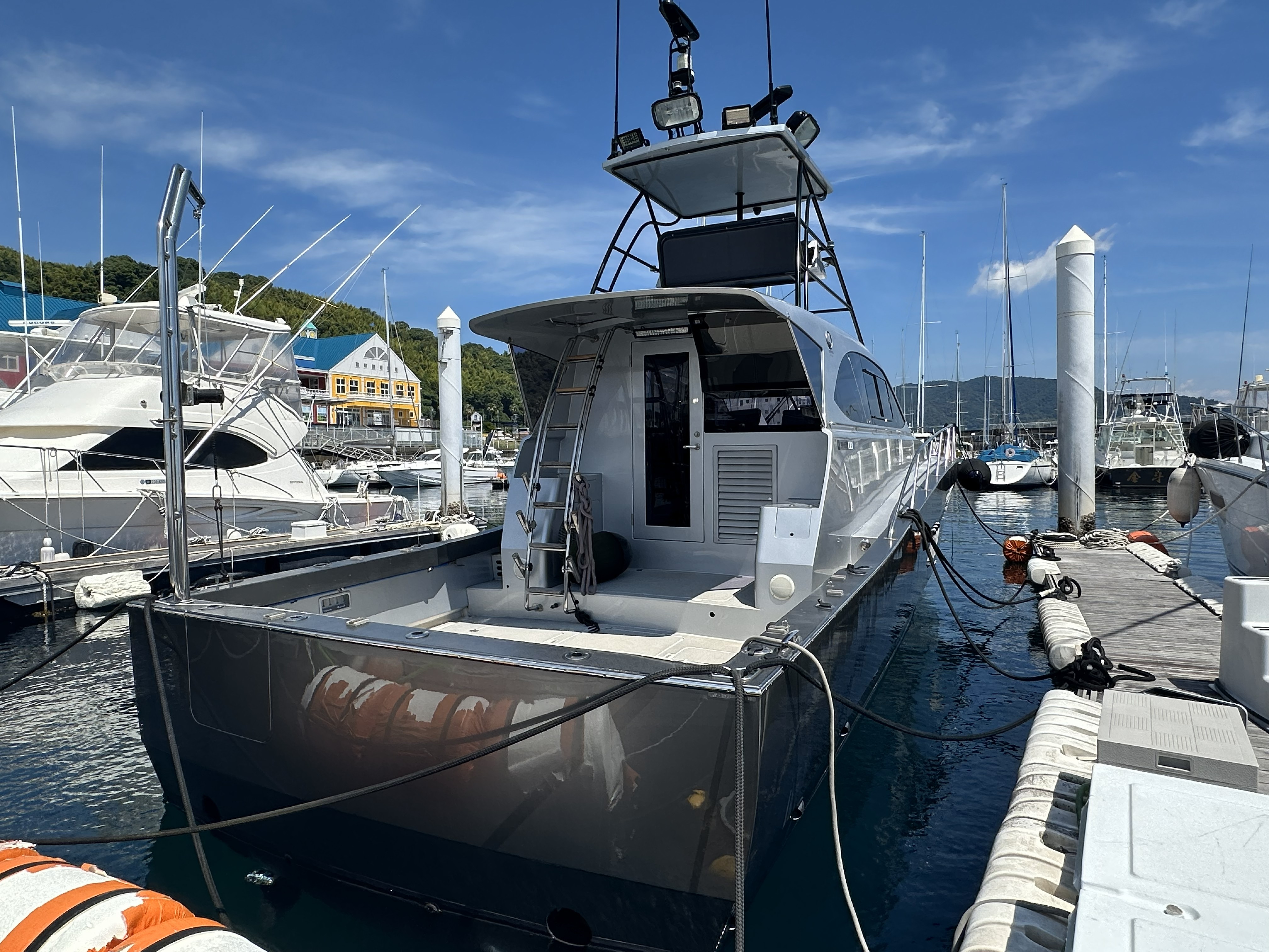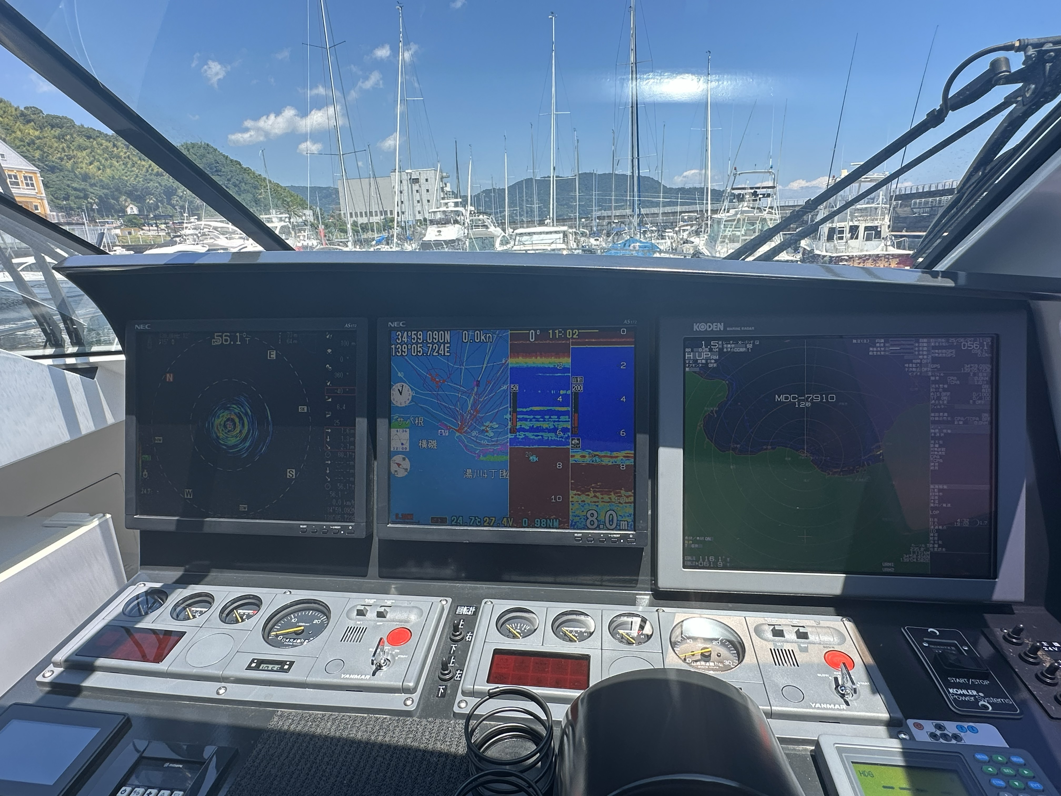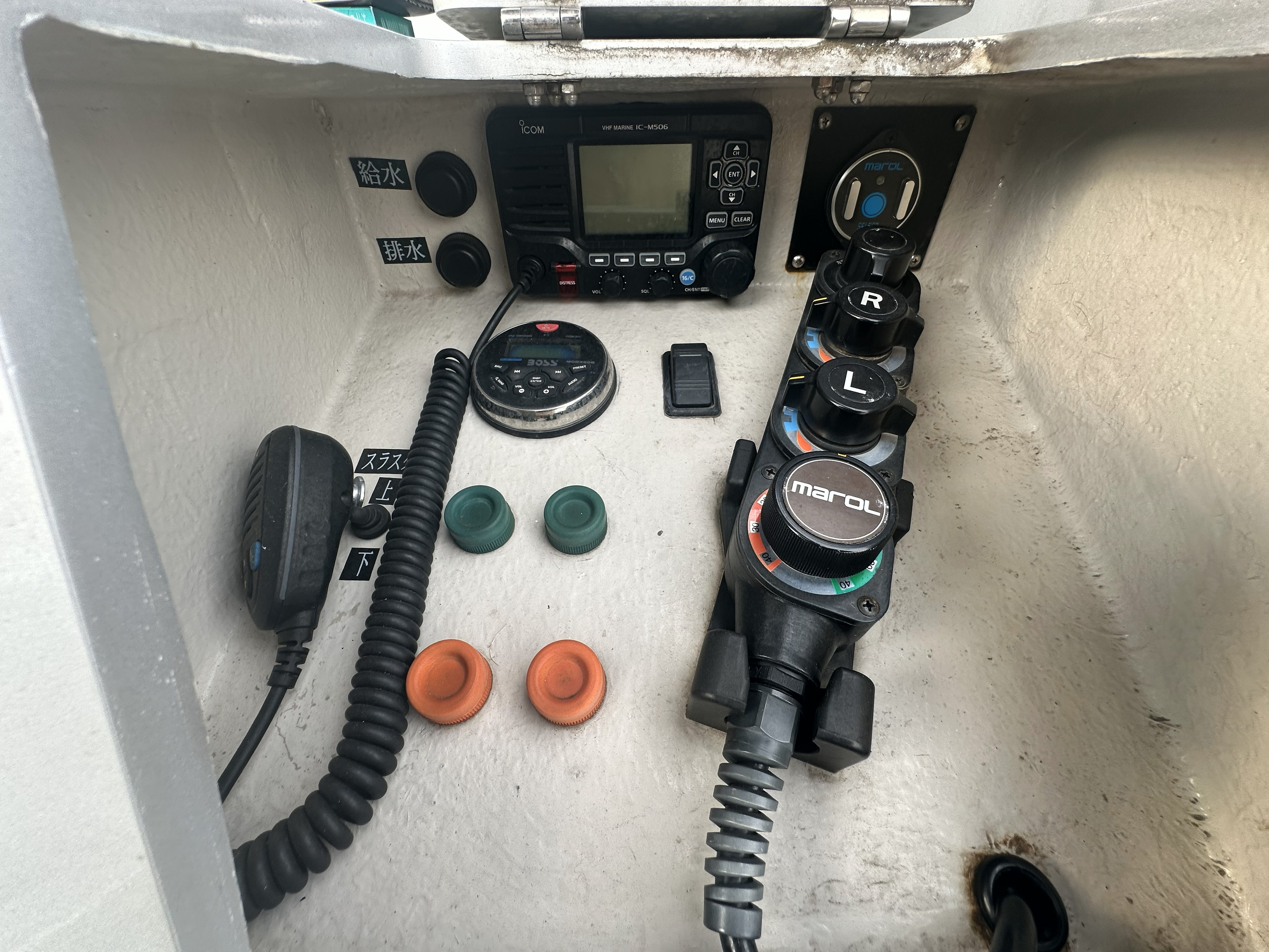 | 艤装品 | GPS・魚探 / GPS / 魚探 / レーダー / マリントイレ / FB / ウインドラス / アンカー / ギャレー / オーナーズルーム / ダイネッティー / トイレ・シャワールーム / 発電機 / 陸電システム / エアコン / 電子レンジ / 温水器 / 冷蔵庫 / 冷凍庫 / バッテリーチャージャー / テレビ / ステレオ / マリンVHF / ロッドホルダー / スラスター / デッキウォッシュ / イケス / デッキライト / オートパイロット |