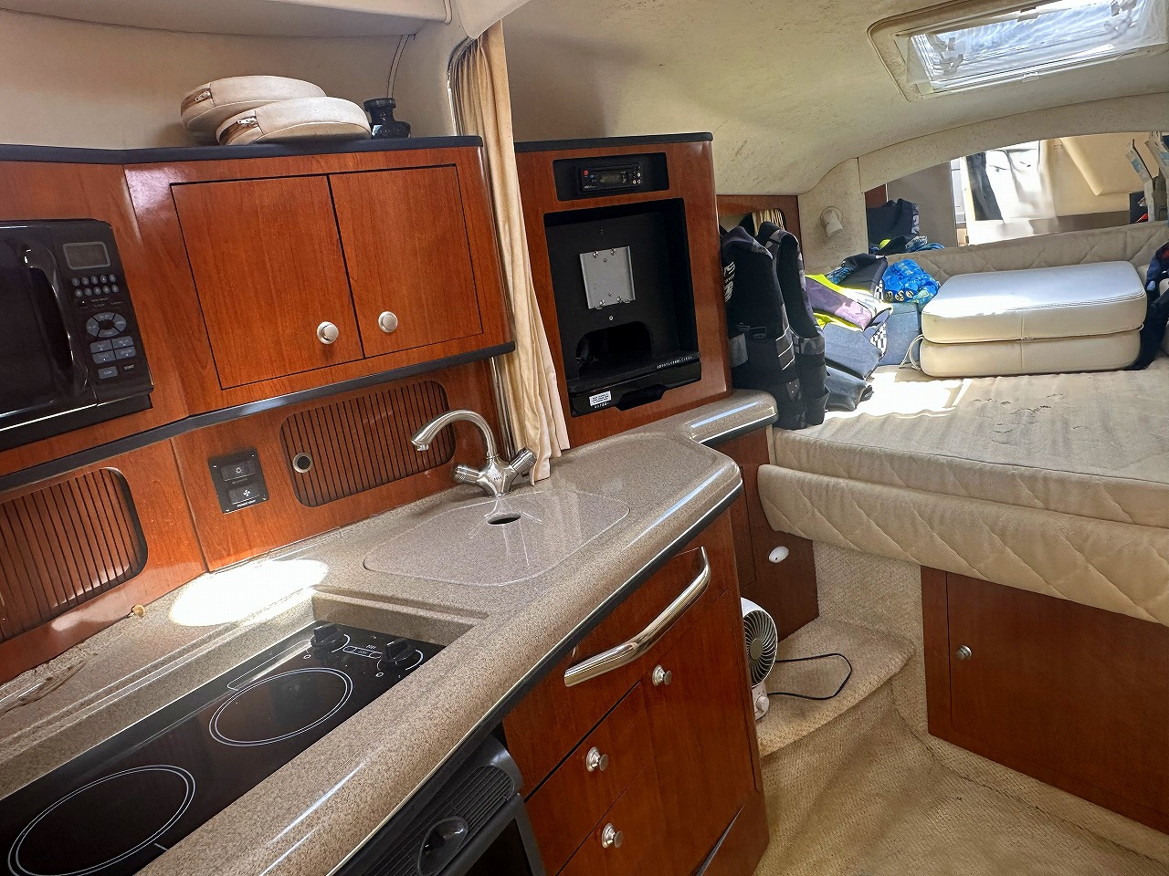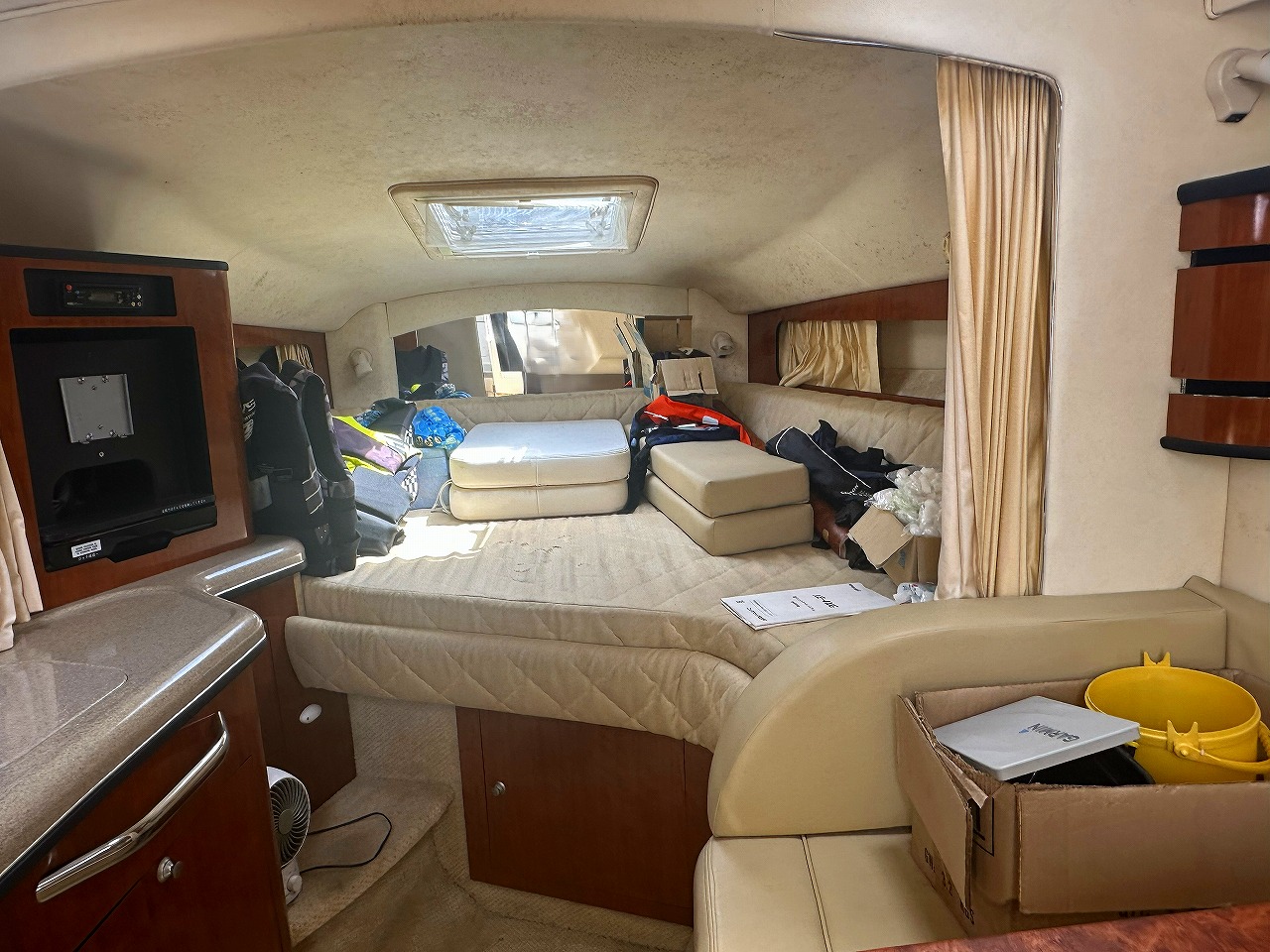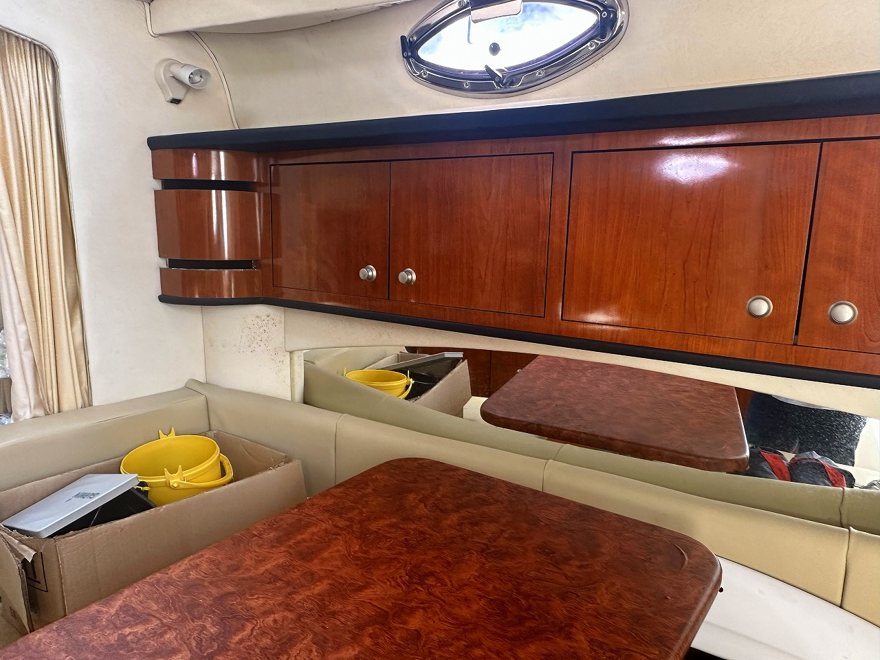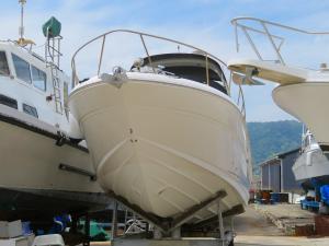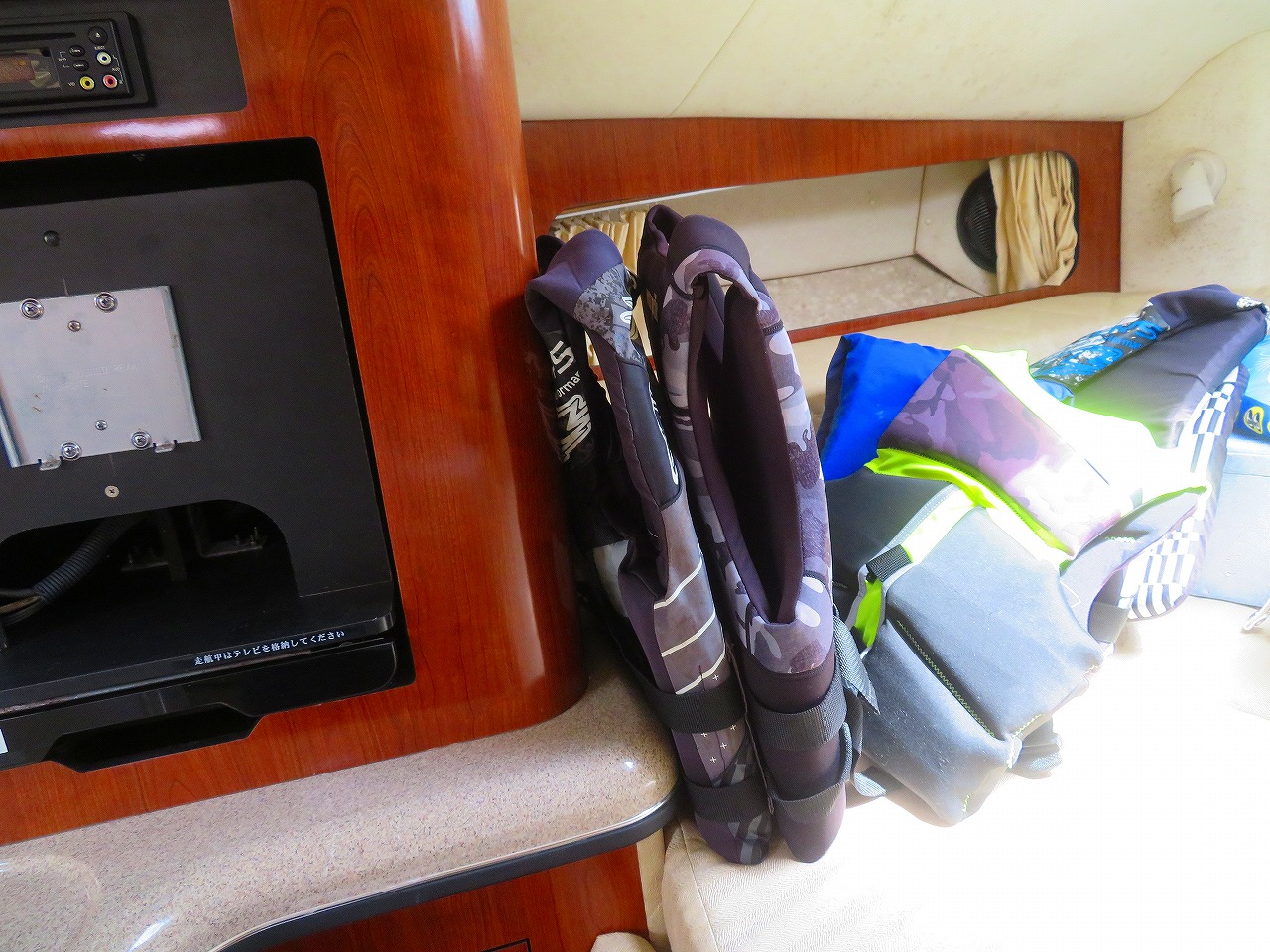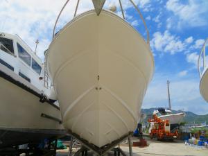 | 艤装品 | GPS・魚探 / マリントイレ / ウインドラス / アンカー / ギャレー / オーナーズルーム / クルールーム / ダイネッティー / トイレ・シャワールーム / 発電機 / 陸電システム / エアコン / 電子レンジ / 温水器 / 冷蔵庫 / バッテリーチャージャー / ステレオ / ロッドホルダー / ツナドア / トランサムステップ / スイミングラダー / スラスター |